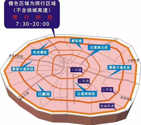 限行范围: 成都市绕城高速公路(G4202)(不含)以内所有道路。
