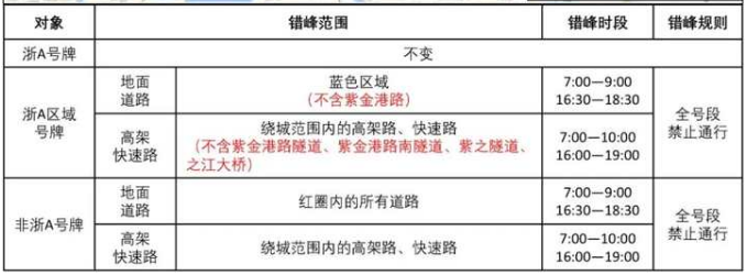 非浙A外地车:绕城高速公路内所有高架路、快速路(含匝道以及附属桥梁、隧道)的错峰时段为工作日的7:00~10:00和16:00~19:00;错峰出行范围内的其他道路错峰时段仍是工作日的7:00~9:00和16:30~18:30。