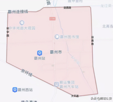 霸州市:城区外围环路西环路、112国道市区段、东环路、北环路、大广引线以内道路(不含环路)。永清县:益昌路、武隆路、文苑路、会昌街、金雀街、府东街、裕华街、裕丰街(含)以内道路。